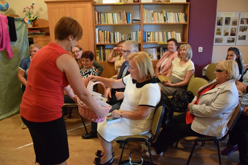 Wszyscy uczestnicy spotkania otrzymali zakładki z pamiątkową pieczęcią oraz kartki okolicznościowe przygotowane przez pracowników GBP.