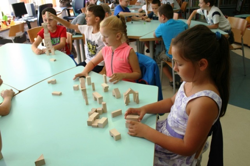 W warsztatach uczestniczyły dzieci z grup przedszkolnych i szkoły. Warsztaty rozpoczęły się zabawą zainicjowaną przez animatora przy wykorzystaniu chusty animacyjnej. W dalszej części warsztatów dzieci brały udział w zabawach prowadzonych przy użyciu drewnianych zabawek. Młodzi konstruktorzy prześcigali się w pomysłach na wygląd budowli. Do prowadzenia tych aktywności wykorzystano karty zabaw. Przygotowano kącik książek o tematyce ekologicznej, lesie, drzewach oraz poradniki z pomysłami na prace wykonane z drewna. Eksperymentowanie z zabawkami dało dzieciom wiele satysfakcji, poszerzyło horyzont wiedzy i pobudziło twórczo do dalszej części spotkania jakim było czytanie książki o przygodach Pieńka, wprowadzające do rozmowy na temat drewna. Ostatnim punktem spotkań były warsztaty plastyczne polegające na wykonaniu kolorowanki XXL oraz dekorowaniu serc. Na zakończenie spotkania każda grupa otrzymała ulotki na temat drewna oraz doniczki z ziarenkami drzew.