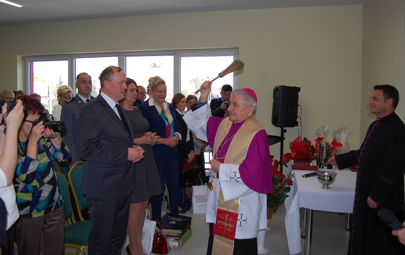 Po przedstawieniu historii biblioteki i powstania nowego budynku głos zabrał JE Ks. biskup Edward Janiak, który podkreślił, że otwarcie takiej instytucji jest niezwykłym wydarzeniem dla lokalnej społeczności. Po skierowanym słowie ks. biskup Edward Janiak wraz z ks. kanonikiem Wiesławem Cieplikiem poświęcili nowy obiekt.