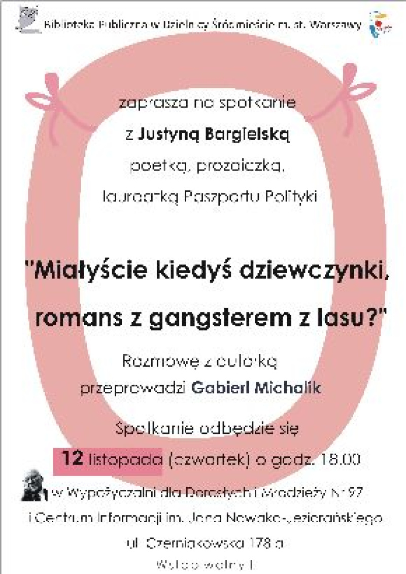 zaprasza na spotkanie z Justyną Bargielską - poetyką, prozaiczką, felietonistką.