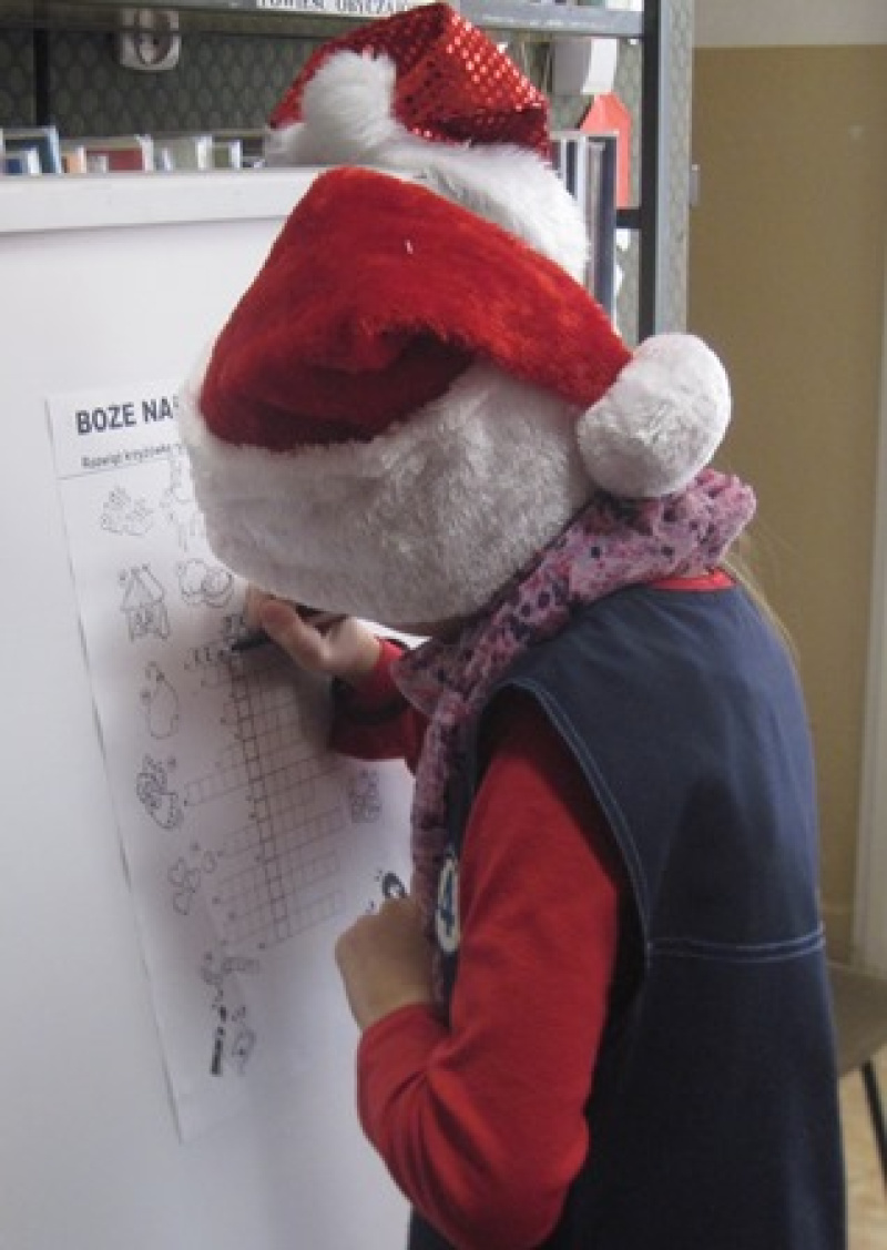 Jak wyglądają przedświąteczne porządki? Co to jest pobojowisko? Kiedy możemy liczyć na pochwałę? Odpowiedzi na te pytania udzielali uczniowie kl. II Szkoły Podstawowej nr 4 w Jaśle podczas zajęć „Mikołajki z Mikołajkiem”, zorganizowanych 8 grudnia przez Filię nr 2 Miejskiej Biblioteki Publicznej w Jaśle.