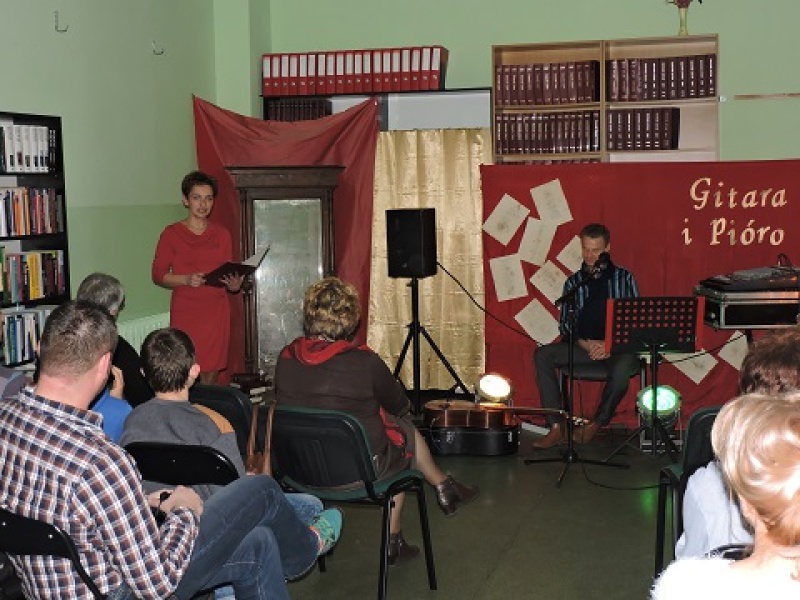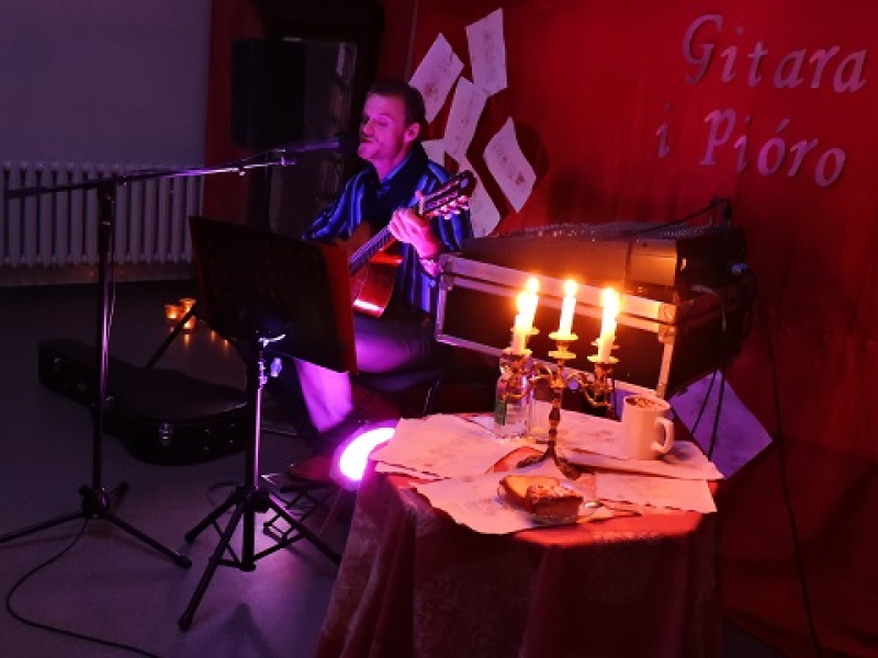 i pióro" przybyli czytelnicy, panie z Klubu Seniora oraz młodzież z Antoniewa. W blasku świec i przy akompaniamencie gitary wybrzmiały słowa bardziej i mniej znanych poetów. Podczas śpiewania "Lokomotywy" Juliana Tuwima goście aktywnie włączyli się do wspólnej zabawy zaproponowanej przez artystę. Wieczór pełen artystycznych wrażeń długo pozostanie w pamięci uczestników.