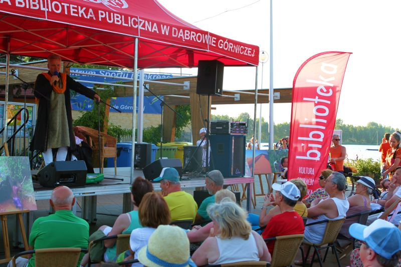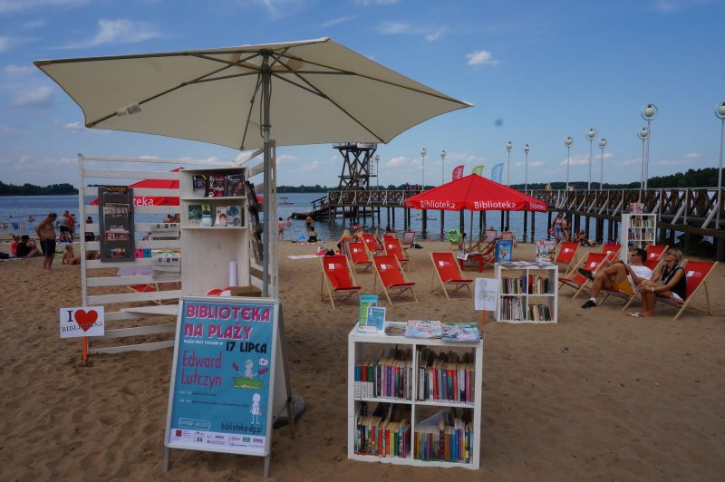 Entuzjaści wypoczynku na dąbrowskiej plaży mieli okazję skorzystać z propozycji, które biblioteka przygotowała dla nich w wakacje. „Biblioteka na Plaży” odbyła się dwukrotnie i za każdym razem cieszyła się dużą frekwencją. Podczas imprezy można było zobaczyć pokazy: zumby, capoeiry oraz tańców - orientalnego, szkockiego i breakdance. Na bibliotecznej scenie pojawili się: Krzysztof Skiba, Edward Lutczyn i Tomasz Zubilewicz. „Bibliotece na Plaży” towarzyszyły interesujące wystawy o tematyce związanej z książkami, czytelnictwem i biblioteką. Przez cały czas trwania imprezy można było skorzystać z „Czytelni pod chmurką” czyli książek i prasy oraz wygodnych leżaków i parasoli chroniących przed słońcem. Tuż obok trwały animacje dla dzieci oraz zabawy grami wielkoformatowymi i literackim kołem fortuny. Plażowe szaleństwa zakończyły koncerty: Przemka Smolarskiego i duetu skrzypcowego Queens of Violins.