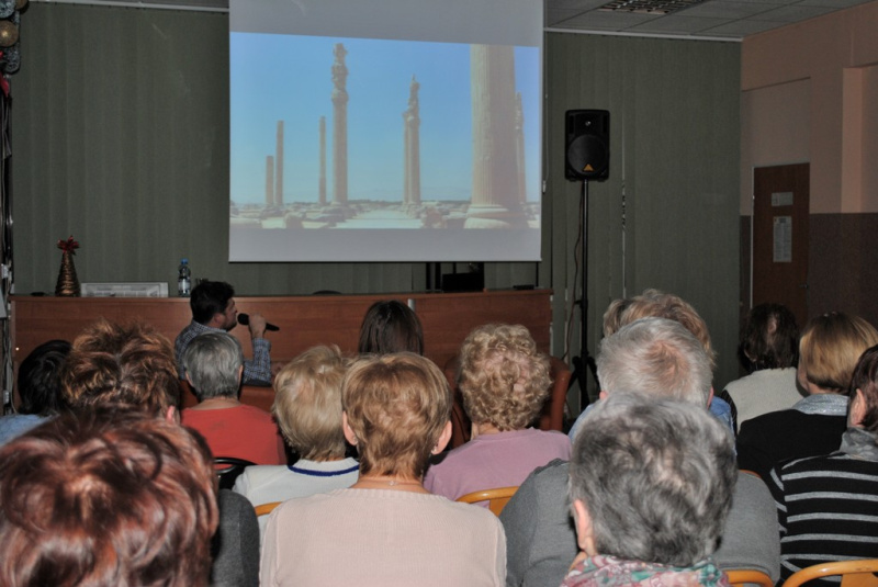 Na spotkaniu obejrzeliśmy przepiękne zdjęcia, krótkie filmiki i wysłuchaliśmy opowieści o podróży do egzotycznych miast – pereł kultury muzułmańskiej pełnych wspaniałych zabytków: Isfahan, Sziraz, Kaszan, Jezd i Kerman. Nasi podróżnicy wędrowali w nich przez wschodnie bazary wdychając oszałamiające zapachy orientalnych przypraw i przyglądając się pracy lokalnych rzemieślników. W wędrówce swej odwiedzili również ruiny starożytnej stolicy Persji – Persepolis.