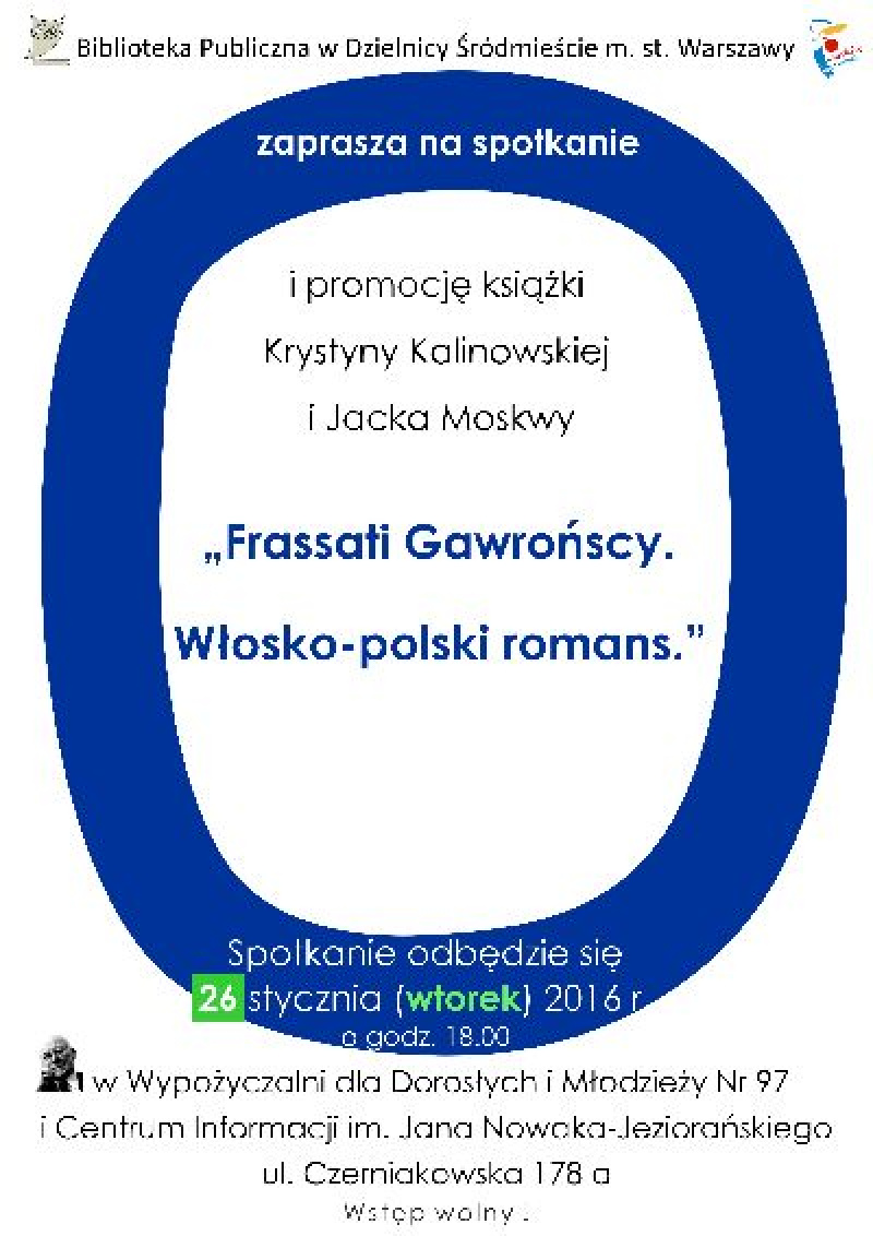 na spotkanie i promocję książki Krystyny Kalinowskiej i Jacka Moskwy pt. "Frassati Gawrońscy. Włosko - polski romans"