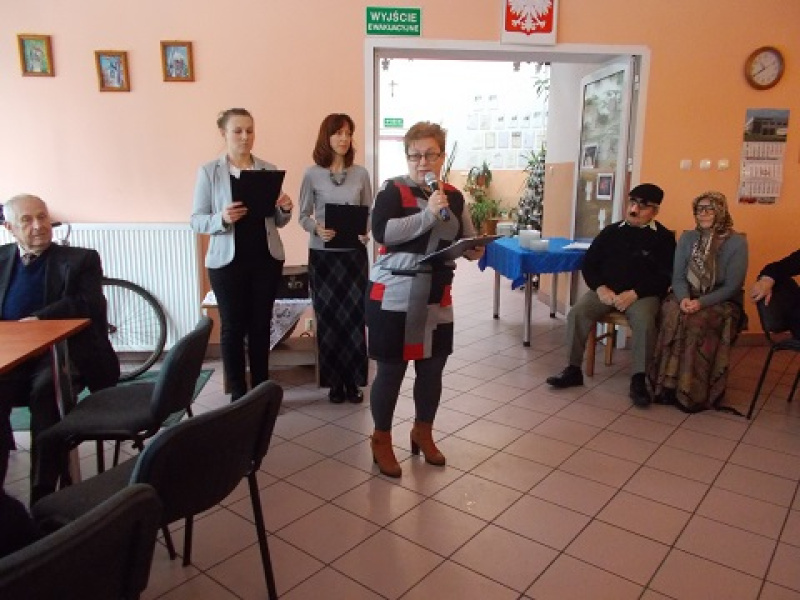 i fizjoterapeutka Patrycja Pawłoszek zaprezentowały program artystyczny. Przestawiły swoje wyobrażenie babci i dziadka oraz słowa znanych ludzi na temat roli najstarszych członków rodziny. Pokazały również inscenizację do wierszy: „Pamiątki babuni" Ewy Waśniowskiej i "Dziadek na rowerze" Wandy Chotomskiej. Po złożeniu życzeń zostały rozdane słodkości, a czas przy torcie uprzyjemniał zespół muzyczny z Dziennego Domu Seniora.