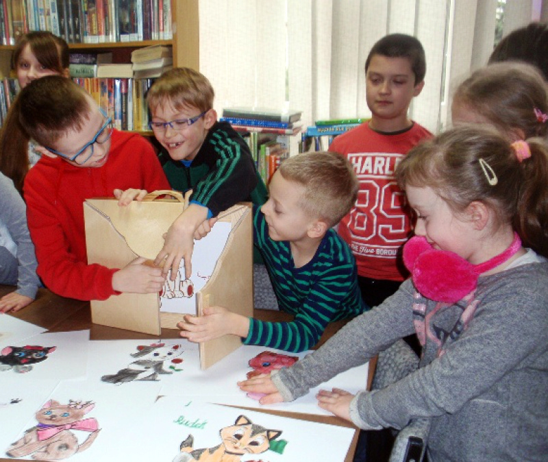 w którym za pomocą specjalnych obrazków opowiadały książkowe historie. Najmłodsi poznali ciekawostki z życia kotów oraz związane z nimi przesądy i przysłowia, stworzyli maski futrzaków, album czworonożnych przyjaciół oraz specjalne „gryzaki-szarpaki”. Jeden z gryzaków został sprawdzony przez mojego psa – Dafiego. Chyba mu się spodobał – żartował Kuba, uczestnik zajęć.