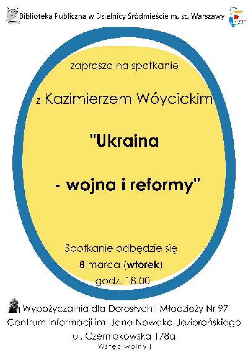 zaprasza na spotkanie z Kazimierzem Wóycickim pt. "Ukraina - wojna i reformy" - publicystą, dziennikarzem i wykładowcą na Uniwersytecie Warszawskim Studium Europy Wschodniej.