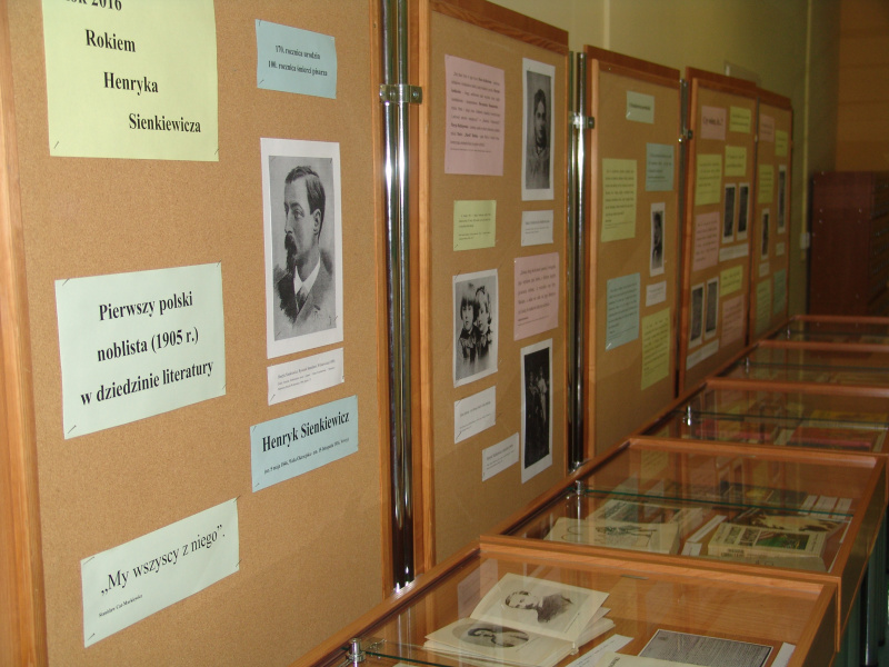 Wystawa „Henryk Sienkiewicz – pierwszy polski noblista w dziedzinie literatury” jest dostępna dla wszystkich osób odwiedzających Bibliotekę Pedagogiczną w Płocku. Ukazuje Henryka Sienkiewicza jako noblistę, a tym samym światowej sławy twórcę, którego dzieła były wielokrotnie wydawane i tłumaczone. Do szkół z obszaru działalności Biblioteki (powiat ziemski płocki, grodzki płocki, gostyniński, sierpecki) – zarówno szkół podstawowych, gimnazjów, jak też szkół ponadgimnazjalnych - zostało rozesłane zaproszenie do obejrzenia wystawy i udziału w zajęciach czytelniczo-medialnych związanych z życiem i twórczością Henryka Sienkiewicza. Integralnym elementem lekcji w Bibliotece jest zwiedzanie wystawy. Zajęcia dostosowane są do wieku uczniów, którzy na różnych etapach edukacyjnych poznają utwory pisarza. Wydarzenie cieszy się dużym zainteresowaniem. Dotychczas z tej formy obchodów Roku Henryka Sienkiewicza w Bibliotece Pedagogicznej w Płocku skorzystało 149 uczniów.