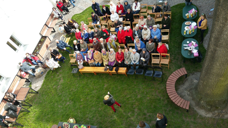 Zaproszenie na podwieczorek w bibliotecznym ogrodzie tak zaintrygowało płocczan, że do przyjaznej gościom Czytelni pod chmurką przybyło mnóstwo gości. Nie zlękli się nawet wcale nie wiosennej jeszcze temperatury, nie wybrali „konkurencyjnej” imprezy… Nie żałowali!