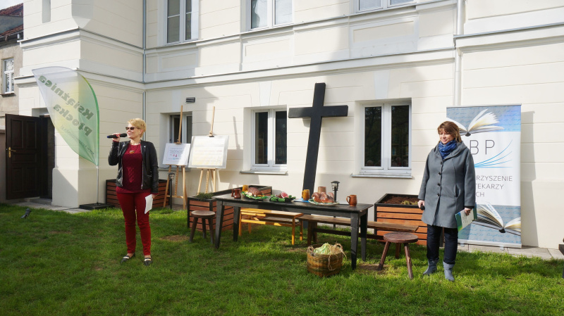 Menu podwieczorku wynagrodziło wybór naszej propozycji nie tylko stałym, od lat wiernym bywalcom. I nie słodkie rogaliki, nie ciepłe i zimne napoje mamy tu na myśli, ale program spotkania i jego atmosferę. Głównym daniem była Literacka kuchnia Książnicy Płockiej, a w niej tym razem Głodny mnich, czyli sekrety refektarza… , czyli teksty literackie i kuchenno-literackie zaprezentowane przez członkinie Teatru Remedium przy Stowarzyszeniu Uniwersytetu Trzeciego Wieku w Płocku, w przygotowaniu interpretacyjnym Henryka Jóźwiaka. Przed i po atrakcjach związanych ze zgłębianiem kulinarnych i okołokulinarnych uniesień z klasztornego refektarza rodem, nasi spragnieni sąsiedzkich kontaktów goście mogli odbyć wirtualny spacer po całej Książnicy Płockiej i zapoznać się z multimedialną kroniką najatrakcyjniejszych przedsięwzięć bibliotecznych z ostatnich miesięcy. W ogrodzie dostępna też była „wolna biblioteka” i – sądząc po zainteresowaniu – to był równie dobrze trafiony pomysł na tę okazję.