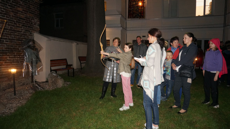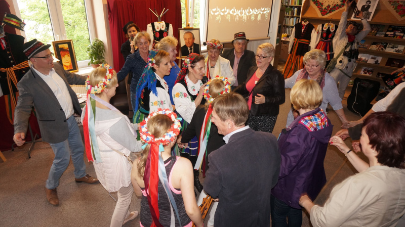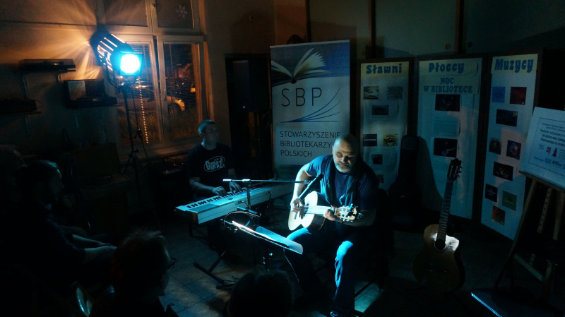 To oni musieli „kierować ruchem” i bezkolizyjnie przeprowadzić gości przez wszystkie atrakcje tak, by nikomu nic nie umknęło. A powodzeniem cieszyło się wszystko bez wyjątku. Postawiliśmy bowiem w tym roku na spotkania ze znanymi płocczanami. Różnorodność była zatem wielka. Tuż u wejścia rozgościł się u nas słynny podróżnik Tony Halik, na piętrze Mira Zimińska-Sygietyńska rekrutowała najzdolniejszych gości do zespołu „Mazowsze”. W sali obok swoje głośne niegdyś „Szopki płockie” Kazimierza Mayznera próbował i wystawiał legendarny Klub Artystyczny Płocczan. W zaimprowizowanej pracowni malarskiej można było podejrzeć przy pracy malarkę Helenę Jawniszko, a w Klubie Pamiątkarstwa Regionalnego dołączyć do uzdolnionych płocczanek i samodzielnie wykonać rękodzielniczą pamiątkę z Płocka. Fani poezji nie omieszkali wstąpić na rozmowę z Władysławem Broniewskim. Na poddaszu zaś trwała …wielka budowa – Pan Tom budował dom! Znalazło się też miejsce na okienko Themersonowskiej poczty, w którym nie nadążano z wysyłaniem pochwalnych telegramów (zgadnijcie, pod czyim adresem?). No i deser, czyli biblioteczny ogród, w którym czas cofnął się aż w średniowiecze. A na trasie zewsząd zerkały portrety wielu, wielu innych… powszechnie znanych, podziwianych… To wszystko w siedzibie głównej, pod „6”, a po drugiej stronie ulicy Kościuszki – w pomieszczeniach Działu Zbiorów Audiowizualnych koncertował Paweł Wójcik! Uwierzcie – w tak doborowym towarzystwie, warto było wieczór ten spędzić. A o przytup zapytajcie tych, którzy z nami byli!