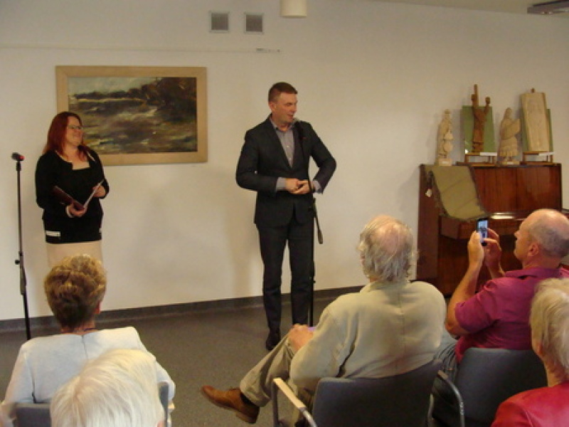 Burmistrz Włodawy Wiesław Muszyński i Dyrektor MBP Włodawa Jacek Żurawski podziękowali artystom za prezentację swoich dzieł, pogratulowali talentu oraz życzyli powodzenia w dalszej artystycznej działalności.