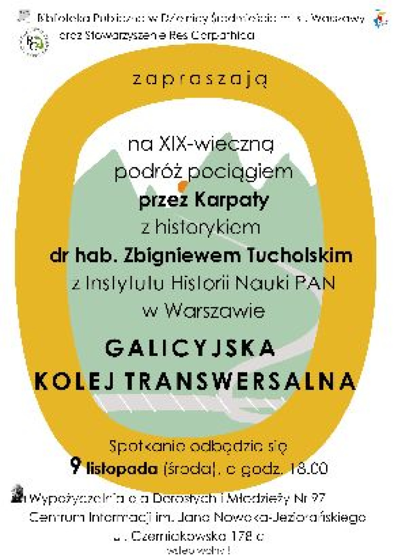 zapraszają na spotkanie z dr hab. Zbigniewem Tucholskim z Instytutu Historii Nauki PAN pt. "Galicyjska Kolej Transwersalna".