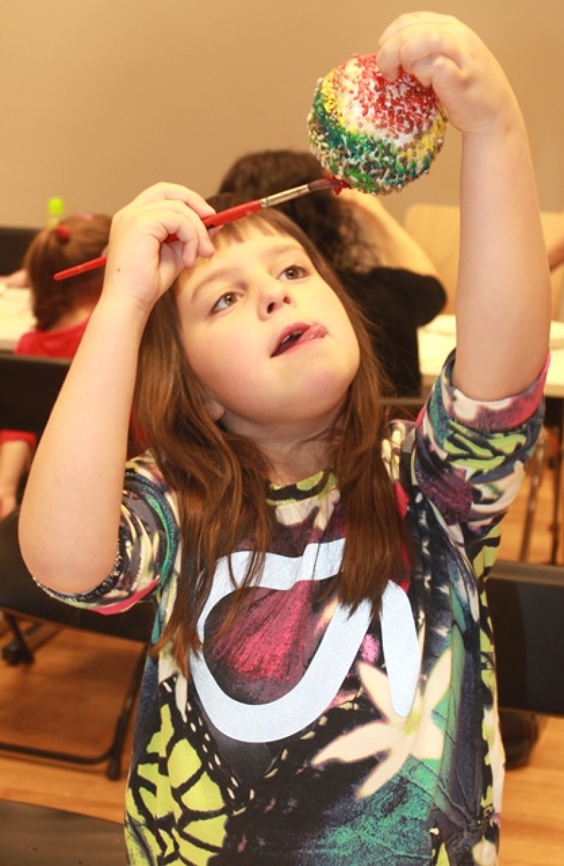 Podczas głośnego czytania opowieści Noc wigilijna Olafa dzieci dowiedziały się jaka przygoda spotkała małego bałwanka w najbardziej magiczną noc w roku i jakim wspaniałym prezentem może być piękny uśmiech i gorący uścisk Mikołaja. Z drobiazgów, które można zaleźć w każdej kuchni jak kasza i ryż, przy pomocy odrobiny kleju i farbek wyczarowaliśmy piękne, kolorowe bombki. Świetnie bawiliśmy się również podczas sesji zdjęciowej w świątecznej fotobudce. Na zakończenie spotkania klubowicze życzyli sobie pogodnych, radosnych Świąt, a każdy z nich otrzymał drobny słodki upominek.