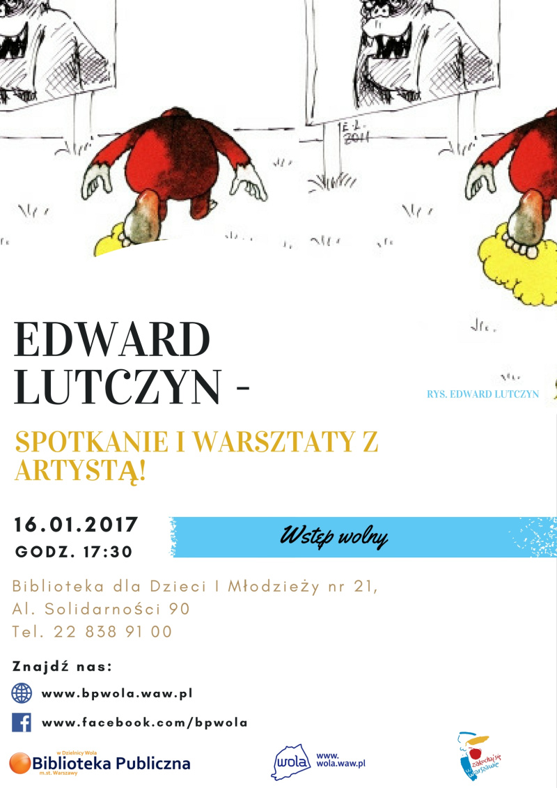 16 stycznia o godz. 17.30 w Bibliotece dla Dzieci i Młodzieży nr 21 odbędzie się spotkanie z Edwardem Lutczynem, jednym z najbardziej rozpoznawalnych polskich rysowników, autorem charakterystycznych ilustracji do ponad stu książek, m.in. serii o przygodach Pirata Rabarbara autorstwa Wojciecha Witkowskiego oraz popularnonaukowych publikacji z cyklu „Odpowiedzi na głupie pytania” Jana Rurańskiego.