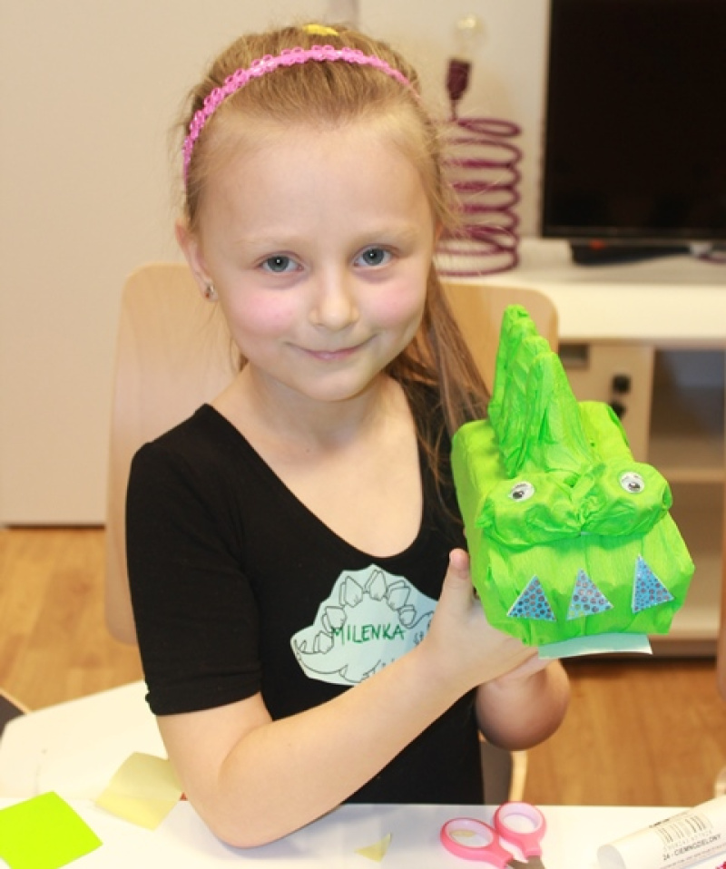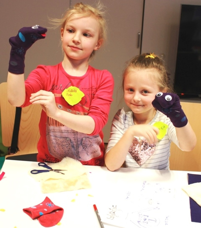 Z najcieplejszym przyjęciem spotkał się bałwanek Olaf, któremu założyliśmy kolorową czapkę i rękawiczki, po to by mógł z nami wyruszyć w podróż po Krainie Lodu. Podczas pełnej niebezpieczeństw drogi przez lodowe pustkowia czekało nas wiele wyzwań: splatanie metrowego warkocza Elsie, zrobienie uprzęży dla renifera oraz rzut papierowymi śnieżkami do przerębli. Przekonaliśmy się, że potwory mogą być śmieszne, zwłaszcza te zrobione ze skarpety, a smoki można pokonać, grając im na harfie, jak zrobił to Tristan.