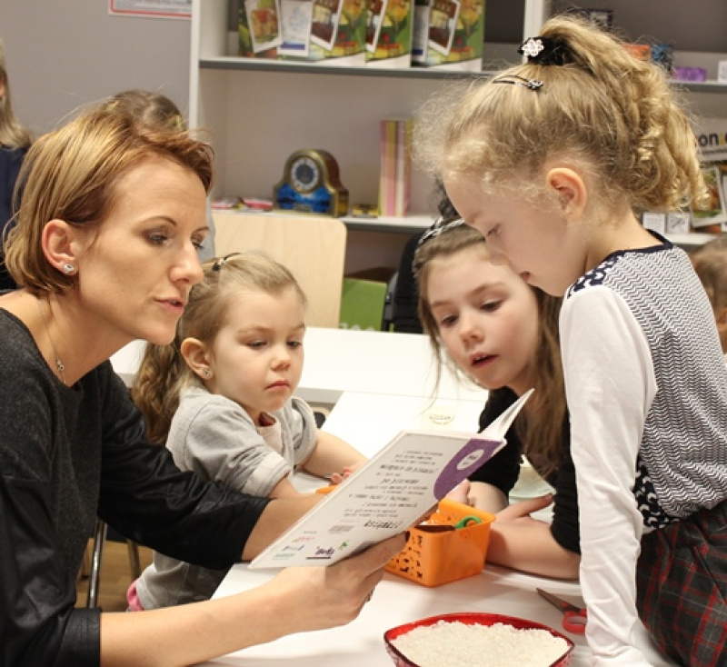 Podczas głośnego czytania poznaliśmy 17 sympatycznych, nieco zwariowanych krawcowych i dowiedzieliśmy się, że nie każda z nich jest miłośniczką porządku oraz igieł, szpulek i agrafek. Z kolorowych skarpet, bez pomocy igły i nici, na miarę zdjętą z naszej wyobraźni „uszyliśmy” urocze zające. Stwierdziliśmy również, że nie da się „uszyć” ubrania na maszynie do pisania, ale ciekawe i pełne dobrego humoru książki, zdecydowanie tak.