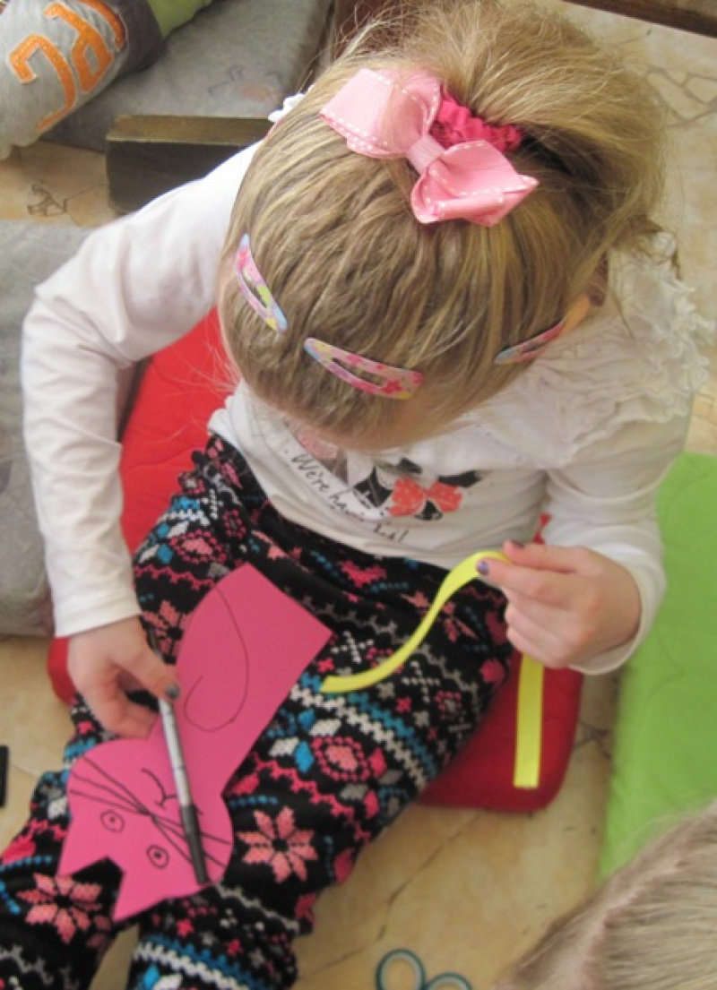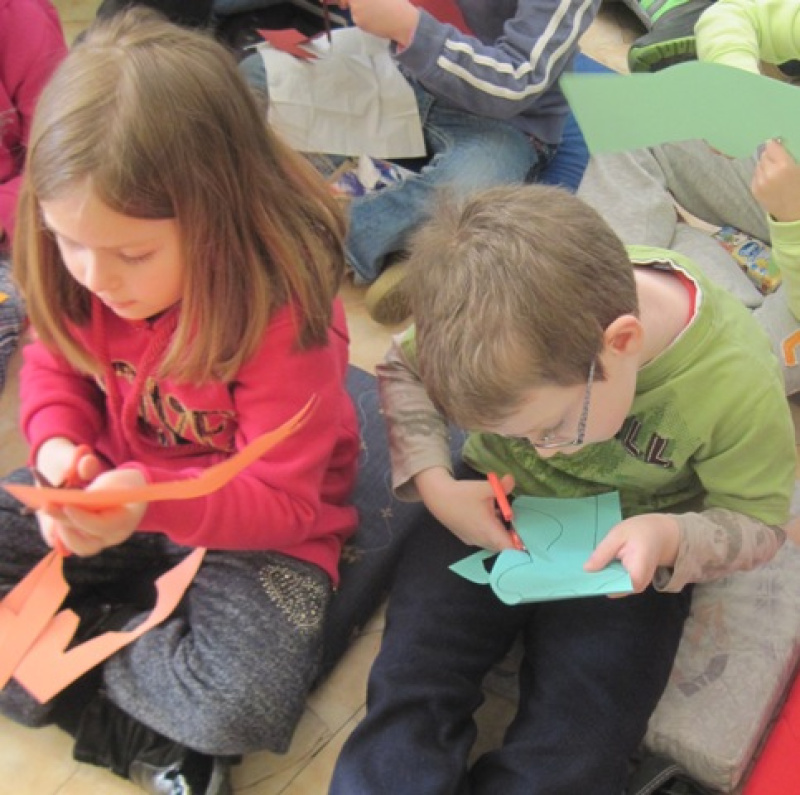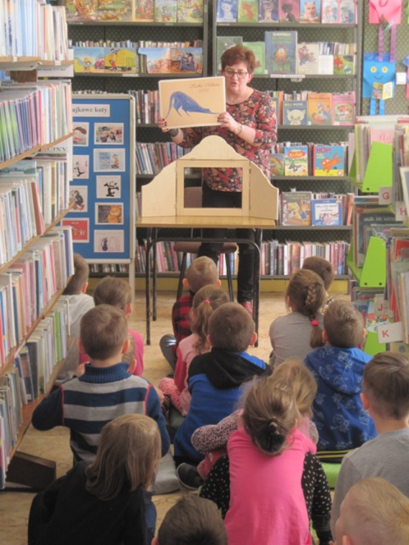Spotkania rozpoczynały się prezentacją teatrzyku Kamishibai oraz przedstwieniem historii „Kotki Milusi” Eleny Molisani. Dzieci w skupieniu słuchały bajki i śledziły towarzyszące opowiadaniu ilustracje. Oceniając postępowanie kotki, zgodnie stwierdziły, że jej zachowanie było brzydkie. Tytułowa Milusia przechwalała się, była leniwa i mało samodzielna. Okazją do wspólnych rozmów o czworonogach stał się obchodzony w lutym Międzynarodowy Dzień Kota. Dzieci poznały odpowiedzi na wiele pytań m.in.: do czego służą kotom wąsy, dlaczego nie lubią wody, ile godzin śpią w ciągu doby oraz jak woła się na koty w innych krajach? Nie zabrakło również kocich zagadek i prezentacji książek o naszych milusińskich pupilach. Zwieńczeniem zajęć było wykonanie zakładek do książek w kształcie kota. Przedszkolaki z wielkim zaangażowaniem wycinały czworonogi, rysowały wąsy i oczy oraz wiązały wstążeczki. Praca wymagała skupienia i cierpliwości, ale w efekcie była powodem uśmiechu i radości.