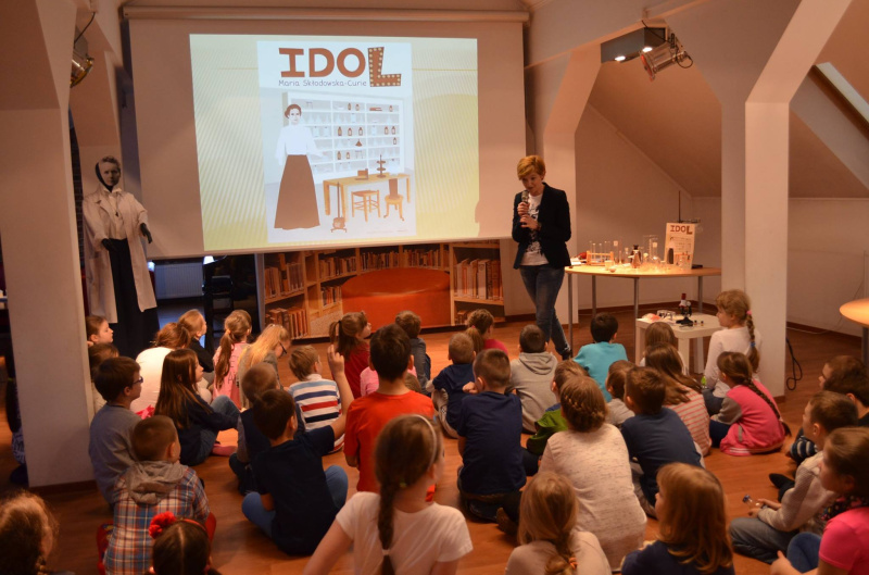 Kim jest idol? To osoba podziwiana, uwielbiana, ktoś kogo chcielibyśmy naśladować, osoba niewątpliwie wyróżniająca się, kreatywna i pracowita. Maria Skłodowska-Curie, wpisuje się w tę definicje idealnie, kobieta niezwykła, matka, żona, wielka uczona, jako jedyna otrzymała dwie Nagrody Nobla w dziedzinie fizyki za prace nad promieniotwórczością oraz w dziedzinie chemii za odkrycie radu i polonu. To właśnie jej postać, stała się dla nas inspiracją do zorganizowania „Bibliotecznego laboratorium”, spotkania, które w przystępny sposób, poprzez zabawę, przybliżyło fascynujący świat, jakim są nauki ścisłe. Mali eksperymentatorzy, mogli zobaczyć, jak wygląda i w co jest wyposażone laboratorium oraz wcielić się przez chwilę w wielkich naukowców i zgłębić tematykę wyporności, elektrostatyki czy sprawdzić jak produkuje się gaz przy użyciu octu i proszku do pieczenia. Dzięki współpracy z Archiwum Polskiej Akademii Nauk w Warszawie, nie lada atrakcją „Bibliotecznego laboratorium” była wystawa o naszej noblistce, dodatkowo dzięki Prezes Towarzystwa Marii Skłodowskiej-Curie w Hołdzie, jedno z rodziców naszych małych naukowców, otrzymało w konkursie książkę pt. „Maria Skłodowska-Curie. Autobiografia i wspomnienie o Piotrze Curie”. Być może wśród małych fizyków i chemików, którzy odwiedzili nas w piątkowy wieczór, znajdą się ci na miarę Marii i będą swoimi odkryciami zmieniać Świat. Specjalne podziękowania dla Zespołu Szkół nr 4 w Wołominie za użyczenie sprzętu laboratoryjnego.