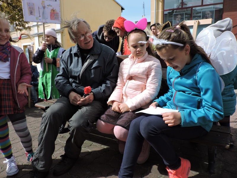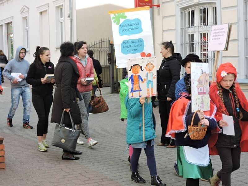 Z hasłem „Książka bawi, śmieszy, uczy i wychowuje ludzi. Książka nigdy się nie znudzi na ustach” korowód przebranych dzieci przemierzał ulice miasta. W marszu towarzyszyły nam dzieci , które wykonały kwiaty oraz młodzież gimnazjalna ze Specjalnego Ośrodka Szkolno-Wychowawczego w Wągrowcu. Podczas pochodu zostały odwiedzone instytucje, którym leży na sercu los książki i czytelnictwa. Odwiedziliśmy więc Starostwo Powiatowe i Urząd Miejski, Księgarnię Locum, Księgarnię Muszyńscy oraz Miejską Bibliotekę Publiczną. Mijani przechodnie byli obdarowywani książkami i własnoręcznie wykonanymi różami. Akcja spotkała się z bardzo pozytywnym odbiorem ze strony mieszkańców miasta i była doskonałą promocją książki i biblioteki.