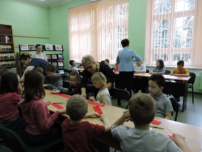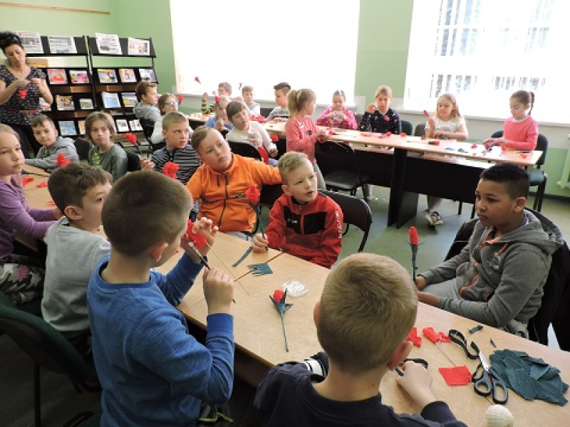 Przygotowując się do Światowego Dnia Książki i Praw Autorskich wspólnie z dziećmi z klasy III h i III c Szkoły Podstawowej nr 4 wykonane zostały podczas warsztatów plastycznych w Powiatowej Bibliotece Publicznej w Wągrowcu czerwone róże.