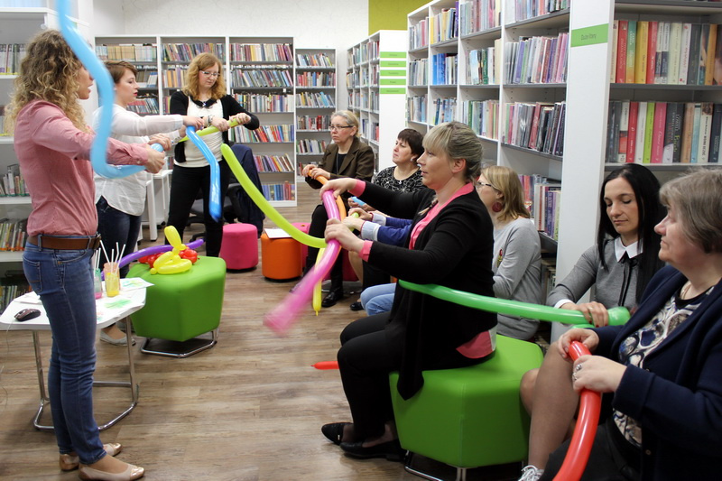 Powiatowy Dzień Bibliotekarza był okazją nie tylko do wspólnego świętowania, ale także do czerpania inspiracji i dzielenia się ciekawymi pomysłami w zawodowym gronie. Bibliotekarze wzięli udział w cyklu szkoleń. Podczas warsztatów Kieszeń online, czyli jak zapanować nad inspiracjami z Internetu, prowadzonych przez Dorotę Woźnicę (MBP w Jaśle) poznali narzędzie pozwalające usprawnić gromadzenie przydatnych informacji i pomysłów zaczerpniętych z Internetu. Katarzyna Koczwara (MBP w Jaśle) na przykładzie akcji Poezji MYŚLI nieuLOTNE zaprezentowała pomysł na realizację interesującego wydarzenia, które można zorganizować przy niewielkim nakładzie finansowym. Natomiast Beata Ablewicz, Ewa Wieczorek i Izabela Tomaszewska (GBP w Jaśle z siedzibą w Szebniach) przedstawiły propozycję kreatywnych zajęć czytelniczo-edukacyjnych dla najmłodszych.