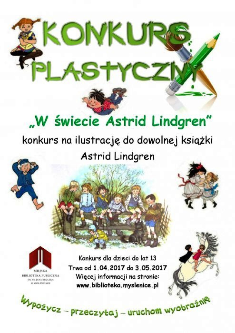 W kwietniu Oddział dla Dzieci Miejskiej Biblioteki Publicznej im. ks. Jana Kruczka w Myślenicach zaprosił dzieci do lat 13 do udziału w konkursie plastycznym "W świecie Astrid Lindgren". Celem konkursu była promocja twórczości literackiej Astrid Lindgren, a także rozwijanie umiejętności plastycznych wśród najmłodszych. Zadanie konkursowe polegało na wykonaniu ilustracji do jednej z książek Astrid Lindgren -wypożyczonej w bibliotece i przeczytanej. Zainteresowanie było ogromne, najwięcej prac przyniosły dzieci w wieku 3-6 lat. I jak podkreślałyśmy podczas gali finałowej moda na zabawki, ubrania, gadżety elektroniczne nieustannie się zmienia, ale na książki Astrid Lindgren nie.