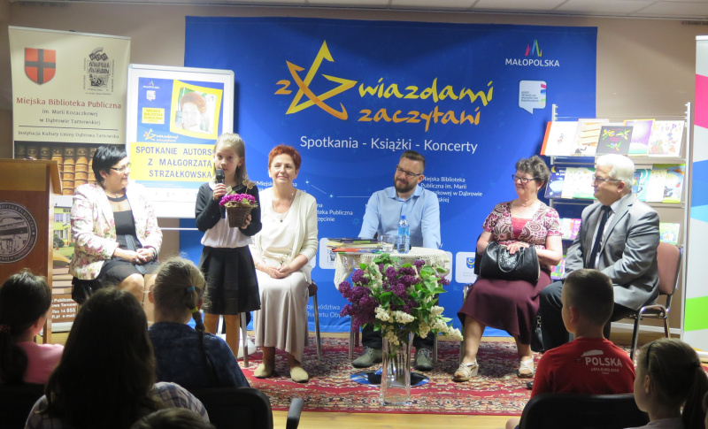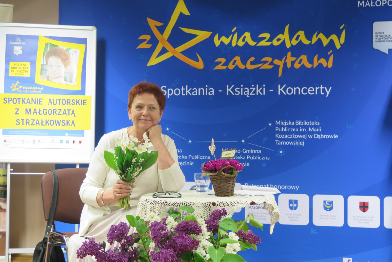 W Tygodniu Bibliotek i z projektu „Z gwiazdami zaczytani” finansowanego z Budżetu Województwa Małopolskiego w ramach I Edycji Budżetu Obywatelskiego Miejska Biblioteka Publiczna im. Marii Kozaczkowej w Dąbrowie Tarnowskiej zrealizowała 18 maja br. ostatnie spotkanie autorskie, tym razem z Małgorzatą Strzałkowską.