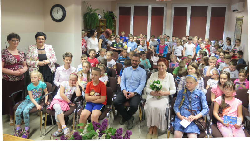 arcytrudnych wersów z jej książeczek. Autorka m.in. „Wierszyków łamiących języki”, „Rad nie od parady”, „Leśnych głupków”, „Wierszy, że aż strach” i wielu innych książeczek spotkała się na Sali Audytoryjnej MBP z dziećmi ze szkół podstawowych z naszego miasta oraz Żelazówki i Smęgorzowa w gronie dyrektora Wojewódzkiej Biblioteki Publicznej w Krakowie Jerzego Woźniakiewicza, burmistrza Dąbrowy Tarnowskiej Krzysztofa Kaczmarskiego, radnej RM Barbary Gawle. Oprócz czytania fragmentów swoich wierszy pisarka zaprezentowała również własne kolaże, które z zamiłowaniem wykonuje również ilustrując książki. Swoimi wypowiedziami zachęciła dzieci, aby już od najmłodszych lat dbały o kulturalne słownictwo i poprawną polszczyznę, udowadniając jednocześnie podczas łamigłówek językowych, że język polski choć jest trudny to też piękny, bo bogaty w synonimy, neologizmy, archaizmy itp.