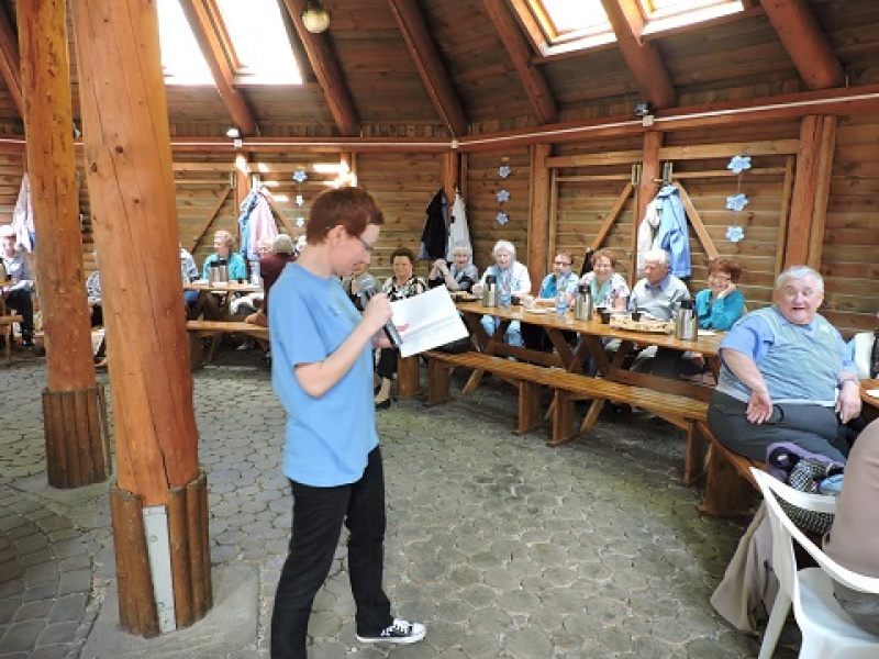 Ostatnią imprezą Tygodnia Bibliotek 2017 była "Niebieska biesiada z książką w tle". Do Ośrodka Edukacji Leśnej w Kaliskach zaprosiliśmy pensjonariuszy Dziennego Domu Seniora w Wągrowcu, by wspólnie świętować nie tylko zakończenie Tygodnia Bibliotek ale również Dzień Polskiej Niezapominajki. Imprezę rozpoczęły życzenia, które bibliotekarkom Powiatowej Biblioteki Publicznej złożyli Starosta Wągrowiecki Tomasz Kranc i kierownik DDS Aldona Wawrzyniak. Następnie goście obejrzeli przedstawienie, w którym wystąpiły bibliotekarki powiatowej. W dalszej części imprezy były konkursy, śpiewy, tańce oraz smaczny poczęstunek.