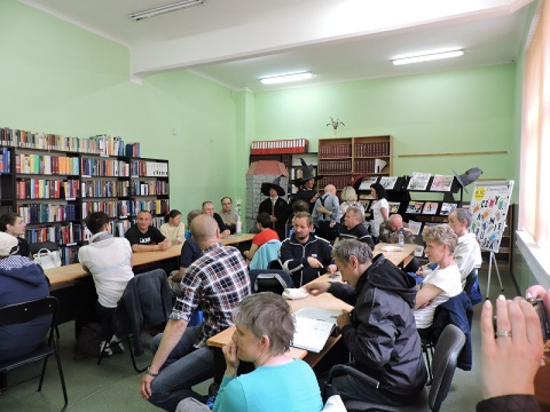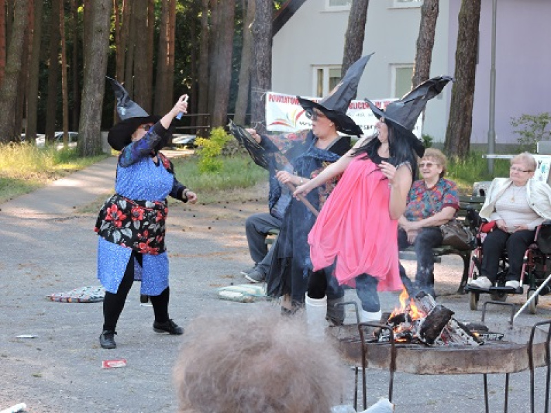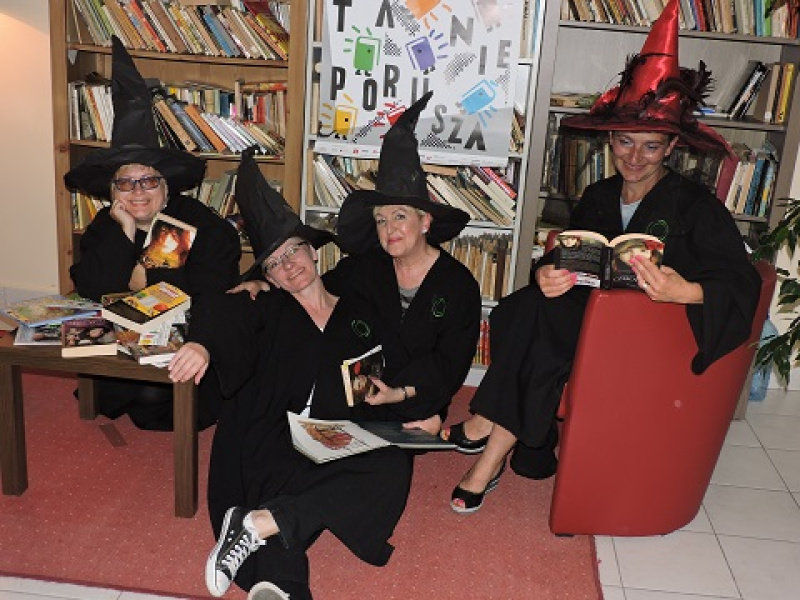 Motywem przewodnim Nocy Bibliotek 2017 w Powiatowej Bibliotece Publicznej w Wągrowcu były czarownice, co stanowiło nawiązanie do historii Wągrowca i okolic. Najpierw odwiedzili nas podopieczni Środowiskowego Domu Opieki Społecznej, którzy z wielkim przejęciem zamieniali się w postaci z bajek, a następnie czarowali papier zamieniając go w barwny ogród motyli oraz kolorowe podobizny Czarownic. Pożegnawszy swoich sympatycznych gości, Czarownice z powiatowej wsiadły na miotły i przeleciawszy nad Jeziorem Durowskim wylądowały w Ośrodku Rehabilitacyjno-Wypoczynkowym WIELSPIN, w którym już od sześciu lat prowadzą punkt biblioteczny. Spotkanie z kuracjuszami rozpoczęła prelekcja o Czarownicach z okolic Wągrowca, którą wygłosił Marcin Moeglich - członek Towarzystwa Miłośników Ziemi Łekneńskiej. Następnie zgromadzeni obejrzeli przezabawny spektakl przygotowany przez bibliotekarki w oparciu o "Księgę Czarownic" Zbigniewa Dmitrocy. W dalszej części wieczoru bawiliśmy się tańcząc z miotłami, odkrywając skarby czarodziejskiego worka, a za sprawą konkursów literackich zaczęcając do odkrywania magicznego świata książek.