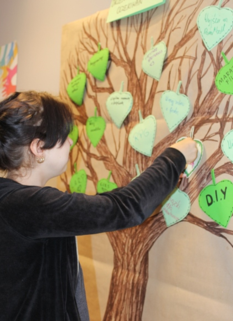 Podczas ćwiczenia „Drzewo oczekiwań” wymieniliśmy spostrzeżenia na temat wolontariatu w naszej instytucji i zastanowiliśmy się jak go rozwijać i udoskonalać. W rezultacie na drzewie zawisły kolorowe liście z propozycjami i pomysłami wolontariuszy.