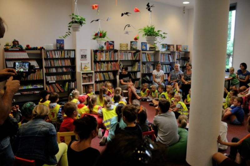 Kulturalne Dni Myślenic rozpoczęliśmy od bibliotecznego spotkania dla najmłodszych. Ponad 60 dzieci wzięło udział w imprezie "Malujemy Myślenice". W programie znalazła się pogadanka o ulubionych przez mieszkańców zakątków naszego miasta, konkurs na rozpoznawanie najciekawszych miejsc Myślenic oraz prelekcja policjantki na temat bezpiecznego zachowania się na wakacjach. Finałem było malowanie ulubionych miejsc w Myślenicach na folii rozciądniętej przed budynkiem biblioteki.