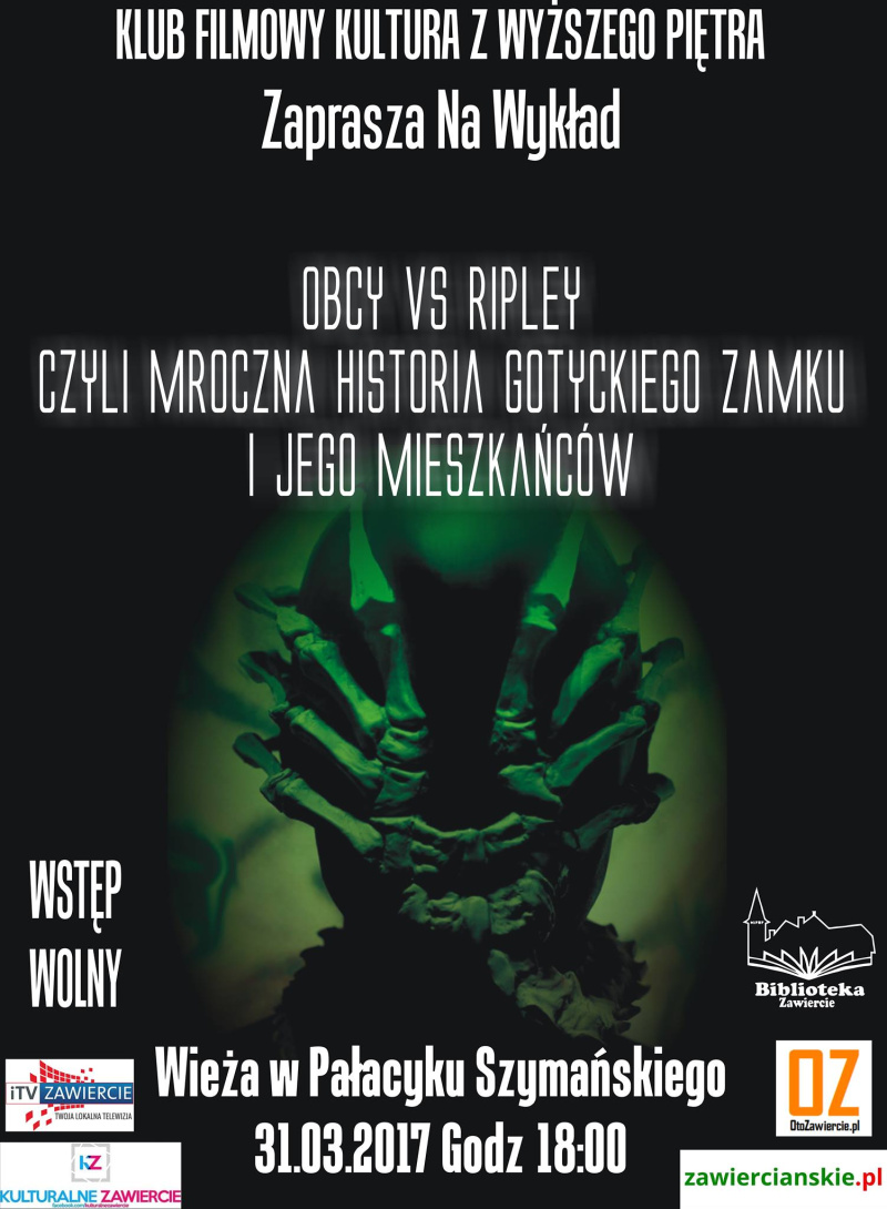 W marcu Klub Filmowy zaprezentował swoim odbiorcom pierwszą część kultowej serii o przybyszach z kosmosu – „Obcy: ósmy pasażer Nostromo” (reż. Ridley Scott, 1979). Przed projekcją film został omówiony na kilku płaszczyznach interpretacyjnych. Przedstawiono tutaj powiązania filmu z powieścią gotycką, jednocześnie przybliżając słuchaczom genezę powstania tego typu powieści. Szczególną uwagę poświęcono finałowej scenie walki pomiędzy Ripley a Obcym, w której ważną rolę odgrywa również oświetlenie i kolory. Znaczną część wykładu poświęcono postaci Obcego: zaprezentowano jego twórców, szwajcarskiego artystę Hansa Rudolfa Gigera oraz włoskiego artystę od efektów specjalnych Carla Rambaldiego, przedstawiono poszczególne stadia rozwoju Obcego, wskazano także różnice pomiędzy postaciami Obcego ukazanymi w innych filmach z serii. Wiele uwagi poświęcono konotacjom seksualnym obecnym w filmie Ridleya Scotta, szczególnie widocznym w samej postaci Obcego. Słuchacze wykładu mieli możliwość dowiedzenia się różnych ciekawostek na temat powstawania filmu „Obcy”, sami również chętnie udzielali innym informacji na temat filmu. Wprowadzeniem do projekcji filmowej było zaprezentowanie fragmentu filmu „Prometeusz” (reż. Ridley Scott, 2012), przedstawiającego wydarzenia wcześniejsze od tych, ukazanych w „Obcym” z 1979 roku oraz omówienie motywu panspermii.