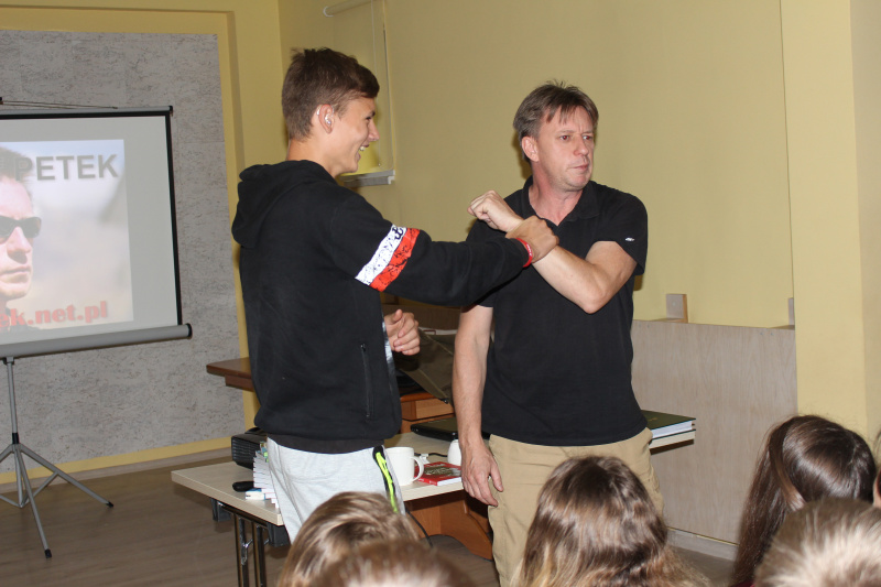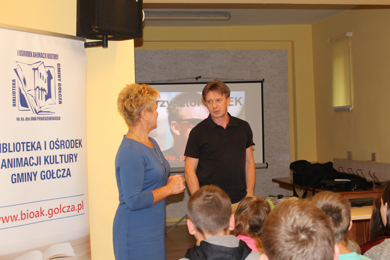 5 października młodzież gimnazjalna z Gołczy miała okazje spotkać się w bibliotece z pisarzem, dziennikarzem, organizatorem wypraw, instruktorem survivalu Krzysztofem Petkiem.