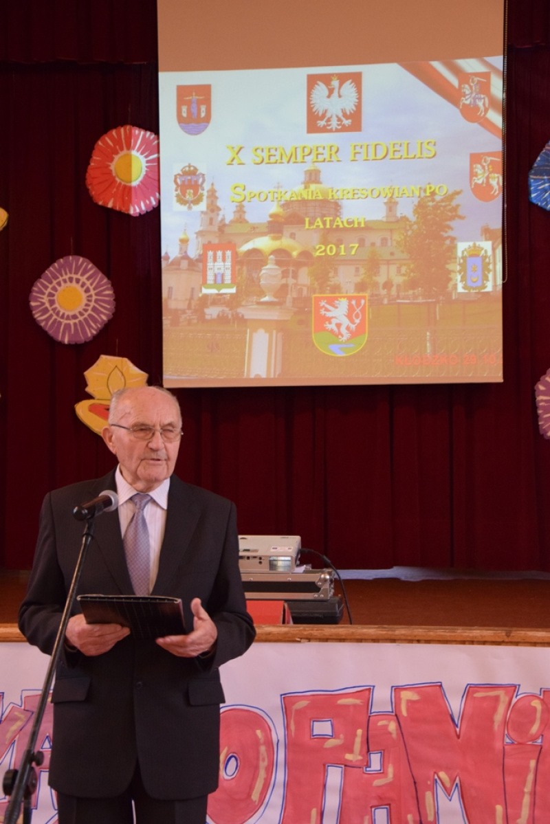 Gminne spotkanie otworzył Wójt Gminy Kłodzko Stanisław Longawa. W swoim wystąpieniu podkreślił, jak ważną rolę w naszym środowisku pełni Stowarzyszenie Kresowian Ziemi Kłodzkiej, które zrzesza i integruje Polaków ewakuowanych z Kresów dawnej Rzeczpospolitej. Kultywuje pamięć o historii Kresów, o ogromnej roli Polaków urodzonych na Kresach w kształtowaniu kultury polskiej, a także zachęcaniu młodego pokolenia do poznawania jej historii i tragicznych wydarzeń – Semper Fidelis.