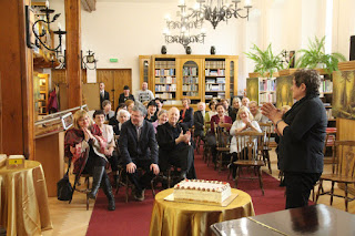W części oficjalnej Koleżance Henryce wręczano okolicznościowe listy, życzenia i upominki. Humorystyczny recital z towarzyszeniem fortepianu, zaprezentowany przez zaprzyjaźnionego Przemysława Kaweńskiego z chojeńskiego Centrum Kultury, zgrabnie wprowadził zebranych w część towarzyską, w której królował tort, pyszne kanapki i serdeczne rozmowy.
