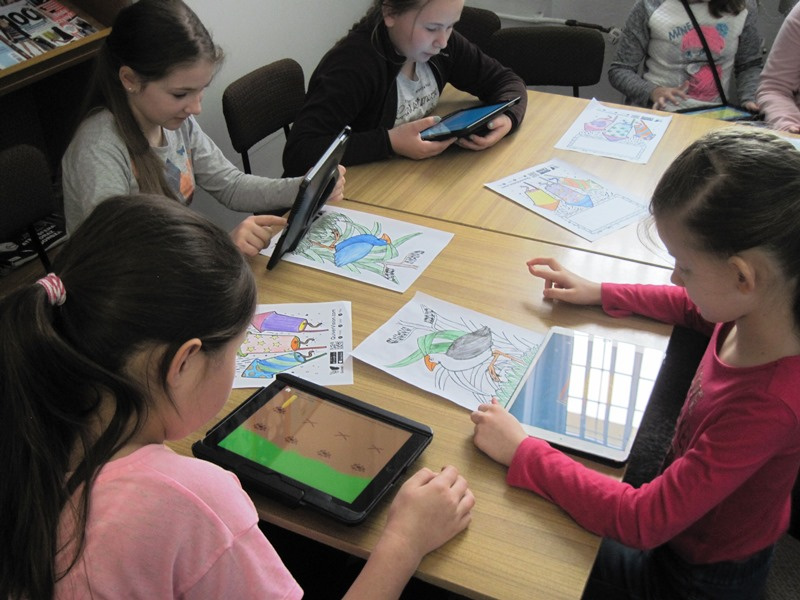 Najmłodsi czytelnicy na zajęciach z tabletami poznali interaktywne książeczki, ciekawe programy edukacyjne, gry i aplikacje w rzeczywistości rozszerzonej, dzięki którym, bawiąc się, można się wiele nauczyć. W czasie zajęć, dzieci obejrzały film „Owca w sieci”, poznając zagrożenia czyhające w Internecie i dowiedziały się jak bezpiecznie się w nim poruszać, nie narażając siebie i bliskich na niebezpieczeństwo. Zobaczyły jak wyglądają kosmiczne pojazdy w trójwymiarze i same spróbowały swoich sił jako konstruktorzy, budując przestrzenne modele z kartonowych pudełeczek i papieru. Za pomocą kredek i własnej wyobraźni stworzyły rysunki kolorowych rajskich ptaków, fajerwerków oraz różnych pojazdów i ożywiły je na tablecie w aplikacji Quiver. Za sprawą aplikacji Pszczoła poznały sekrety tych niezwykłych owadów, zobaczyły z jakich elementów zbudowany jest ul i sprawdziły swoją wiedzę rozwiązując krótki quiz. Tajemnice prastarej polskiej osady uczestnicy zajęć odkrywali z programem 3D W gnieźnieńskim grodzie, a podczas zabawy Sleeveface, jak na bibliotekę przystało, popularyzowali książki ukazując na zdjęciach swoje ulubione tytuły.