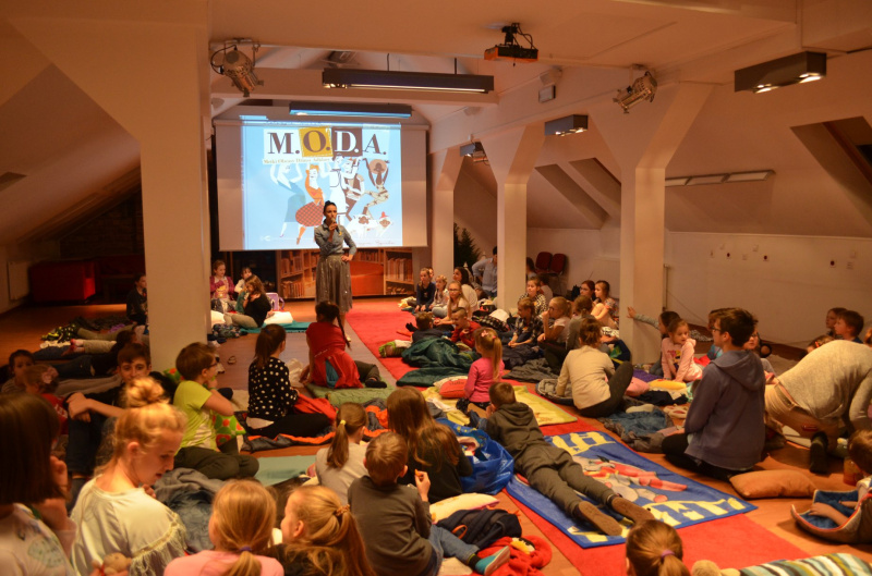 Kolejna noc w bibliotece za nami. Tym razem było bardzo glamour i fashion. Każdy mógł się poczuć, jak światowej sławy projektant mody. Królowały zwiewne suknie, wymyśle nakrycia głowy i hipsterskie, własnoręcznie wykonane koszulki. Podczas nocnego czytania poznaliśmy najsłynniejszych kreatorów stylu, dowiedzieliśmy się jaka jest historia uwielbianych przez wszystkich jeansów i adidasów. Zwieńczeniem stylowej nocy, był pokaz mody. Uczestnicy nocy zaprezentowali wszystkim efekty swojej pracy, oczywiście obowiązkowo na czerwonym dywanie. Dodatkową atrakcją była wystawa pt. ”Moda”, którą mogliśmy oglądać, dzięki uprzejmości Wydawnictwa Dwie Siostry. Serdeczne podziękowania dla jak zwykle niezawodnych Wolontariuszy.