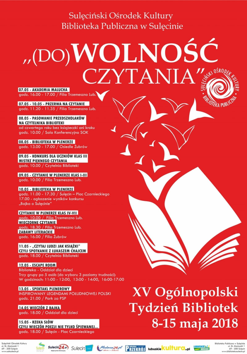 Głównym celem Tygodnia Bibliotek jest podkreślanie roli czytania i bibliotek w poprawie jakości życia, edukacji oraz zwiększenie prestiżu zawodu bibliotekarza i zainteresowania książką szerokich kręgów społeczeństwa. Hasło tegorocznego Tygodnia Bibliotek 2018 brzmi: (DO)WOLNOŚĆ CZYTANIA. Jak możemy to zinterpretować?