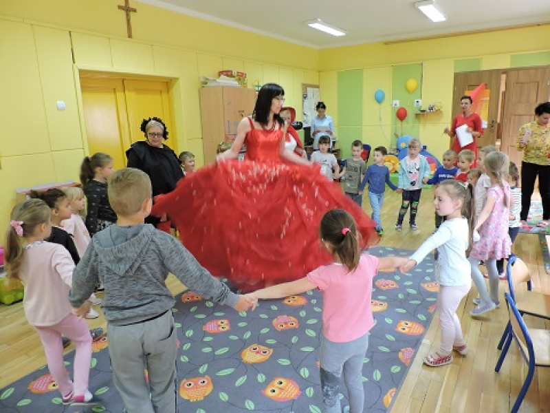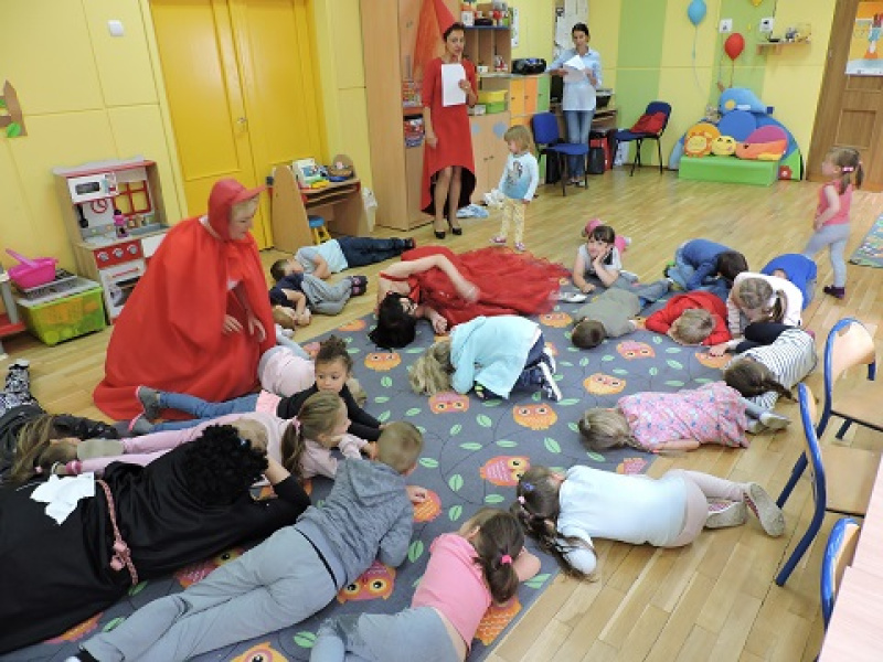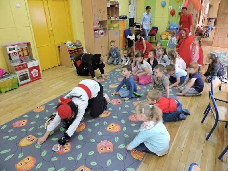 Bibliotekarki z Powiatowej Biblioteki Publicznej w Wągrowcu zawitały do Zespołu Szkolno-Przedszkolnego w Wiatrowie. W tym dniu za sprawą magicznego eliksiru i czarów naszej Wróżki, dzieci przeniosły się w krainę baśni i bajek. W przebranych bibliotekarkach doskonale rozpoznały postaci Czerwonego Kapturka, Gargamela, Kopciuszka i Kapitana Haka. Przedszkolaki znakomicie radziły sobie z zagadkami i zadaniami ruchowymi, za co zaostały uroczyście pasowane na piratów oraz nagrodzone znalezionym skarbem,