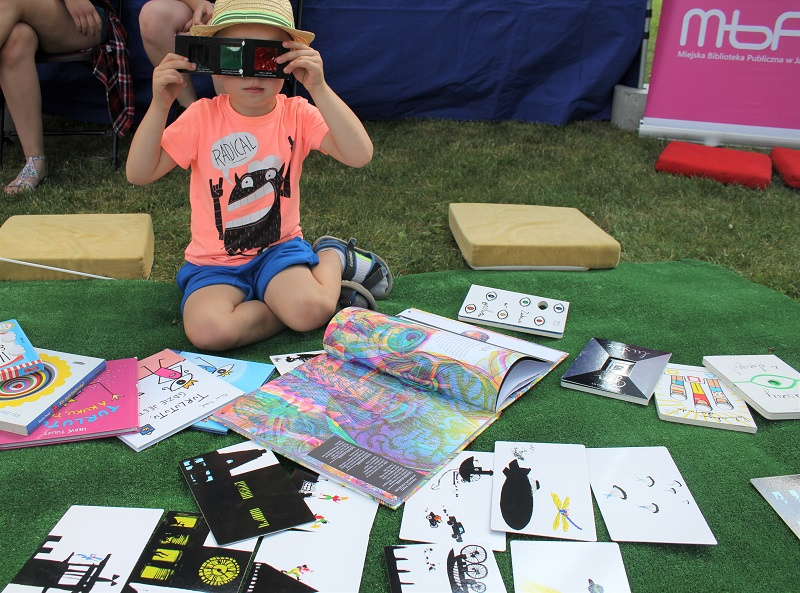 Biblioteka jako jeden ze współorganizatorów a zarazem partnerów jasielskiego Dnia Dziecka, również zaprosiła najmłodszych do wspólnej zabawy, zabierając ich w „Podróże do wnętrza książki”. Na stanowisku z „Historią w tle” na dzieci czekały quizy i zagadki, na które odpowiedzi poszukać mogły w książkach popularnonaukowych. Na stanowisku „Tu się tworzy książki”, dzieci zainspirowane „Książką z dziurą” Harvé Tulleta tworzyły własne, autorskie projekty książkowych stronic, zaś na stanowisku „Tu się bawimy książką” czekały na nie kreatywne zabawy z niezwykłymi interaktywnymi książkami.