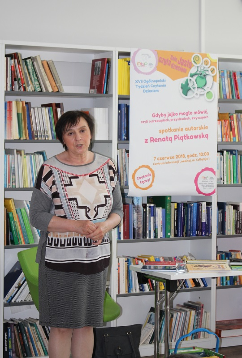 7 czerwca br. uczniowie szkół podstawowych oraz uczestnicy Klubu Czytających Rodzin wzięli udział w spotkaniach z jedną z najbardziej znanych autorek książek dla dzieci i młodzieży – Renatą Piątkowską.