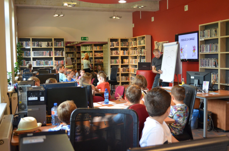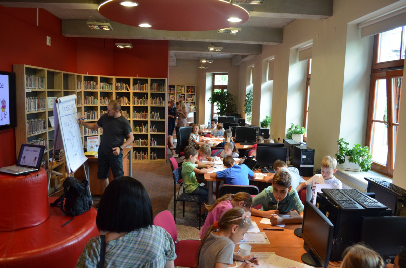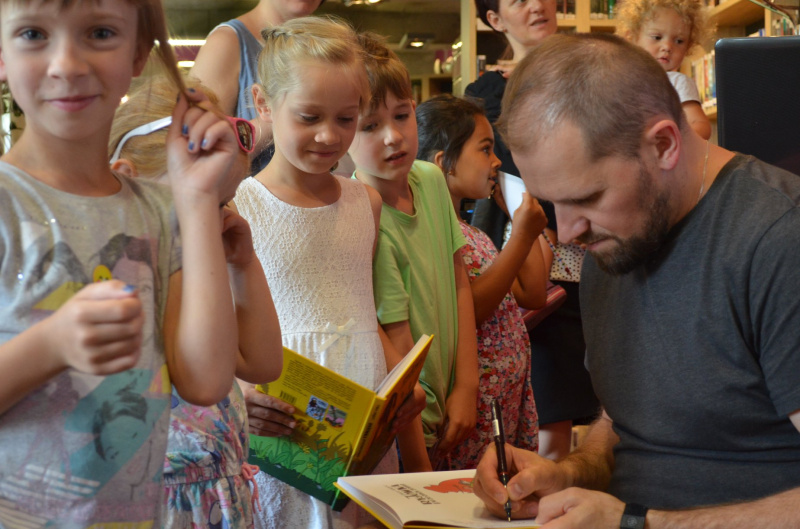 „Bractwo dobrej książki”, to cykl warsztatów dla dzieci i młodzieży z twórcami z kręgu kultury i sztuki, organizowane w ramach programu „Partnerstwo dla książki” Ministerstwa Kultury i Dziedzictwa Narodowego. Naszym pierwszym gościem w Bractwie był Tomasz Samojlik, biolog, twórca komiksów w których m.in. przekazuje wiedzę o przyrodzie. Podczas spotkania nasz gość, opowiedział o pracy biologa oraz o swojej pasji, jakim są komiksy. W części warsztatowej dzieci wymyślały swojego bohatera o którym tworzyły komiks, którego punktem wyjścia miała być wizyta w bibliotece. Pan Tomasz zachęcał dzieci do puszenia wodzy fantazji, dzięki czemu wśród bohaterów można było znaleźć, króla w kształcie pierścienia, butelkę, drogę i księżniczkę szczurów. Wkrótce kolejne spotkania w „Bractwie dobrej książki”. Zapraszamy