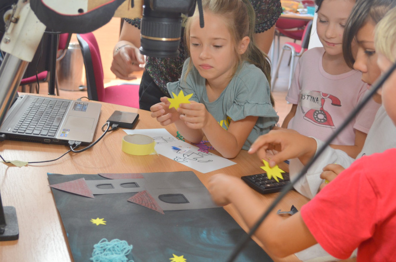 W ramach cyklu zajęć „Bractwo dobrej książki” w bibliotece gościło studio animacji „Circo Barbaro”. Dzieci miały okazję stać się twórcami animacji poklatkowej. Przy użyciu materiałów plastycznych, zaprojektowały bajkowych bohaterów ożywionych na podstawie zdjęć, dzięki programowi do animacji. Stworzony film, opowiadający o wielkiej pasji jaką jest czytanie książek i miłości do biblioteki, już wkrótce będzie można obejrzeć na naszej stronie internetowej. Podczas kolejnych warsztatów, które odbędą się 15 września, mali filmowcy zajmą się montażem filmu o powstawaniu książki ilustrowanej.