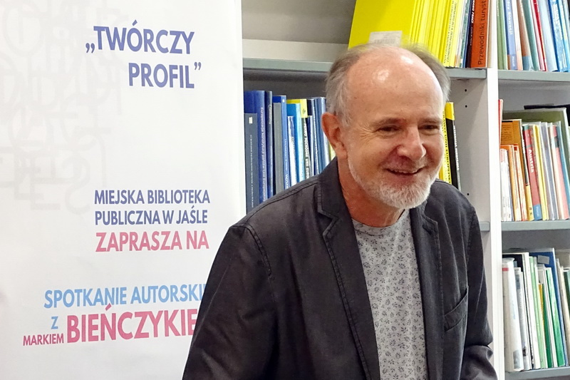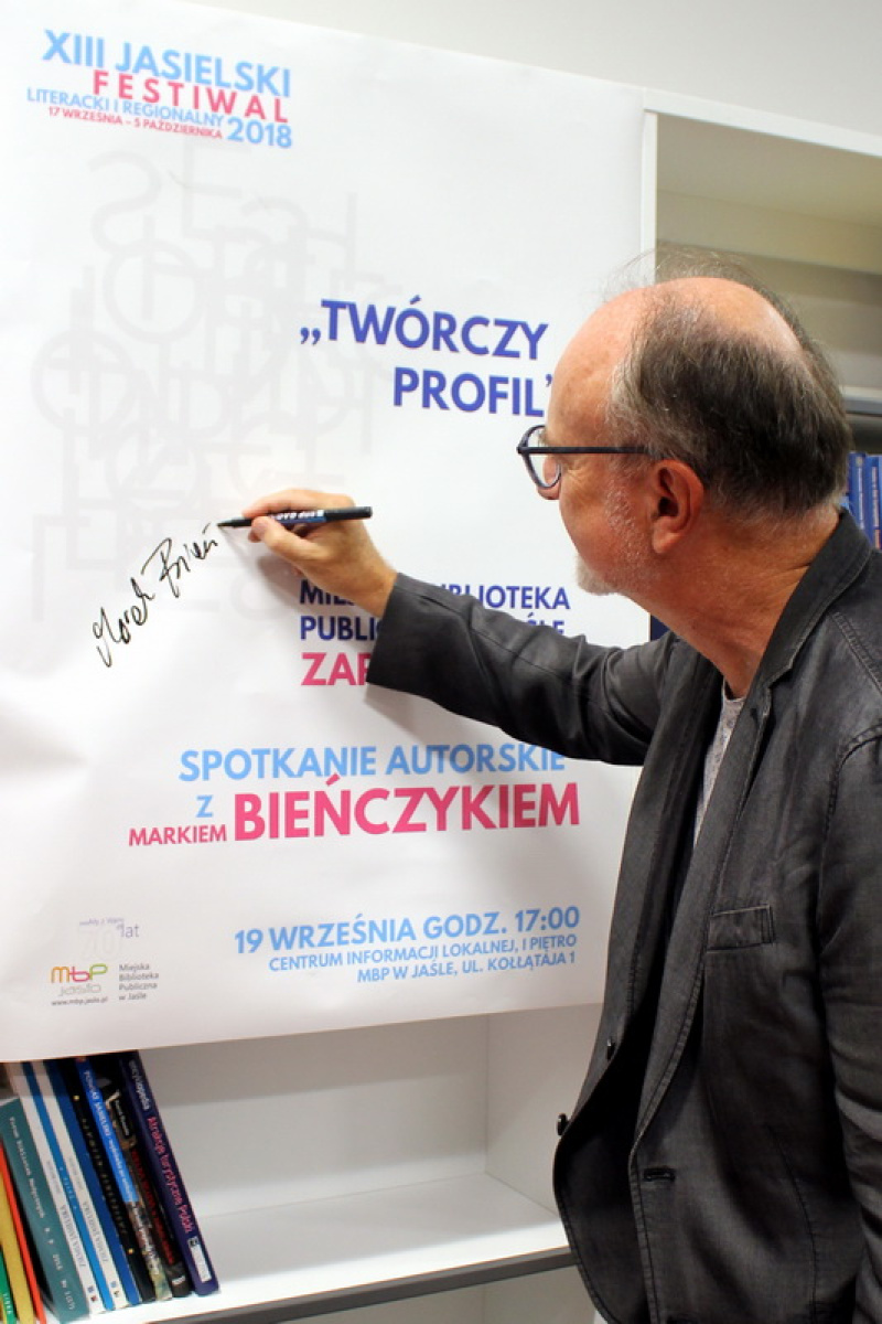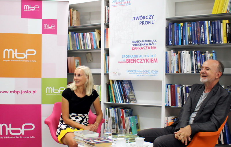 O tym jak sport, dobra kuchnia i wino wpływają na literaturę – rozmawiali 19 września 2018 r. w Miejskiej Bibliotece Publicznej w Jaśle w ramach XIII Jasielskiego Festiwalu Literackiego i Regionalnego, Barbara Sokołowska i Marek Bieńczyk.