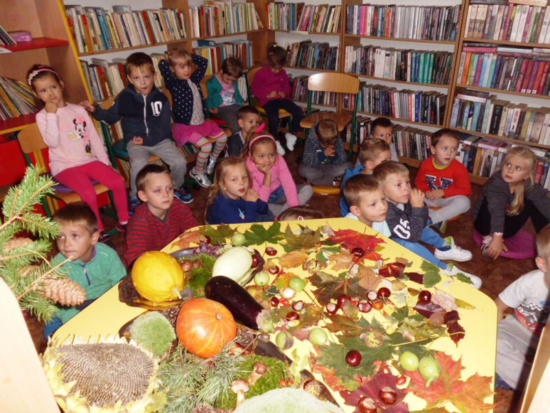 Przyszły, aby wspólnie z panią Romą porozmawiać o jesieni, jej darach i ciemnych chmurach na niebie.