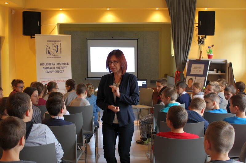 We wtorkowe przedpołudnie w gołczańskiej bibliotece odbyło się spotkanie z pisarką książek dla dzieci Małgorzatą Zarembą.