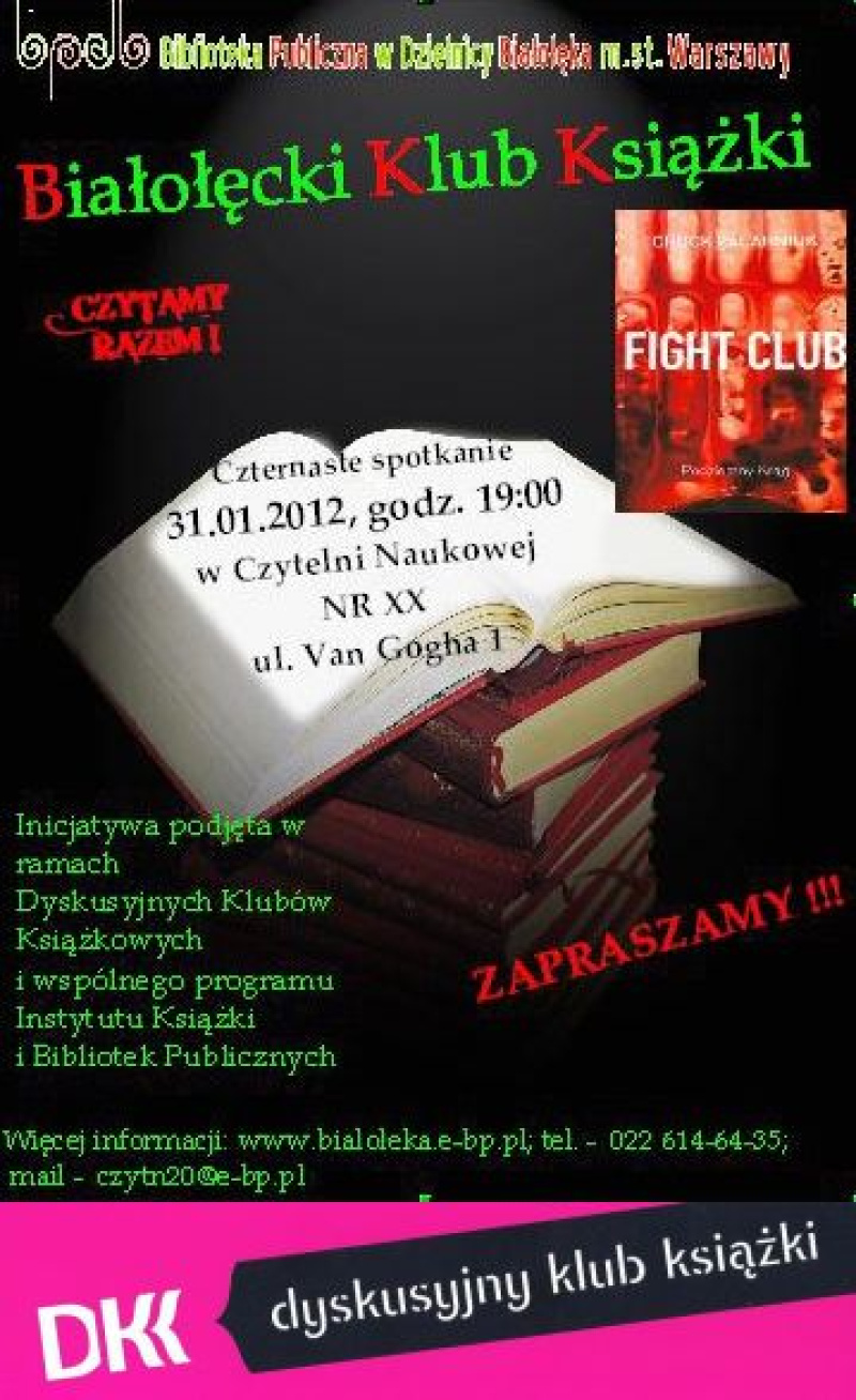 Serdecznie zapraszamy na trzynaste spotkanie Białołęckiego Klubu Książki które odbędzie się 31.01.2011 roku (wtorek) o godz. 19.00 w Czytelni Naukowej XX (ul. Van Gogha 1).